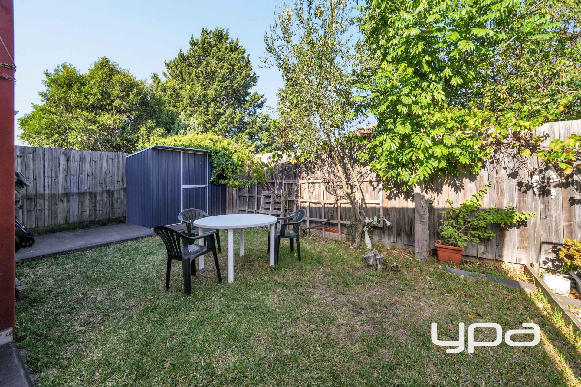 • Private, low-maintenance backyard ideal for gatherings, gardening, or simply relaxing