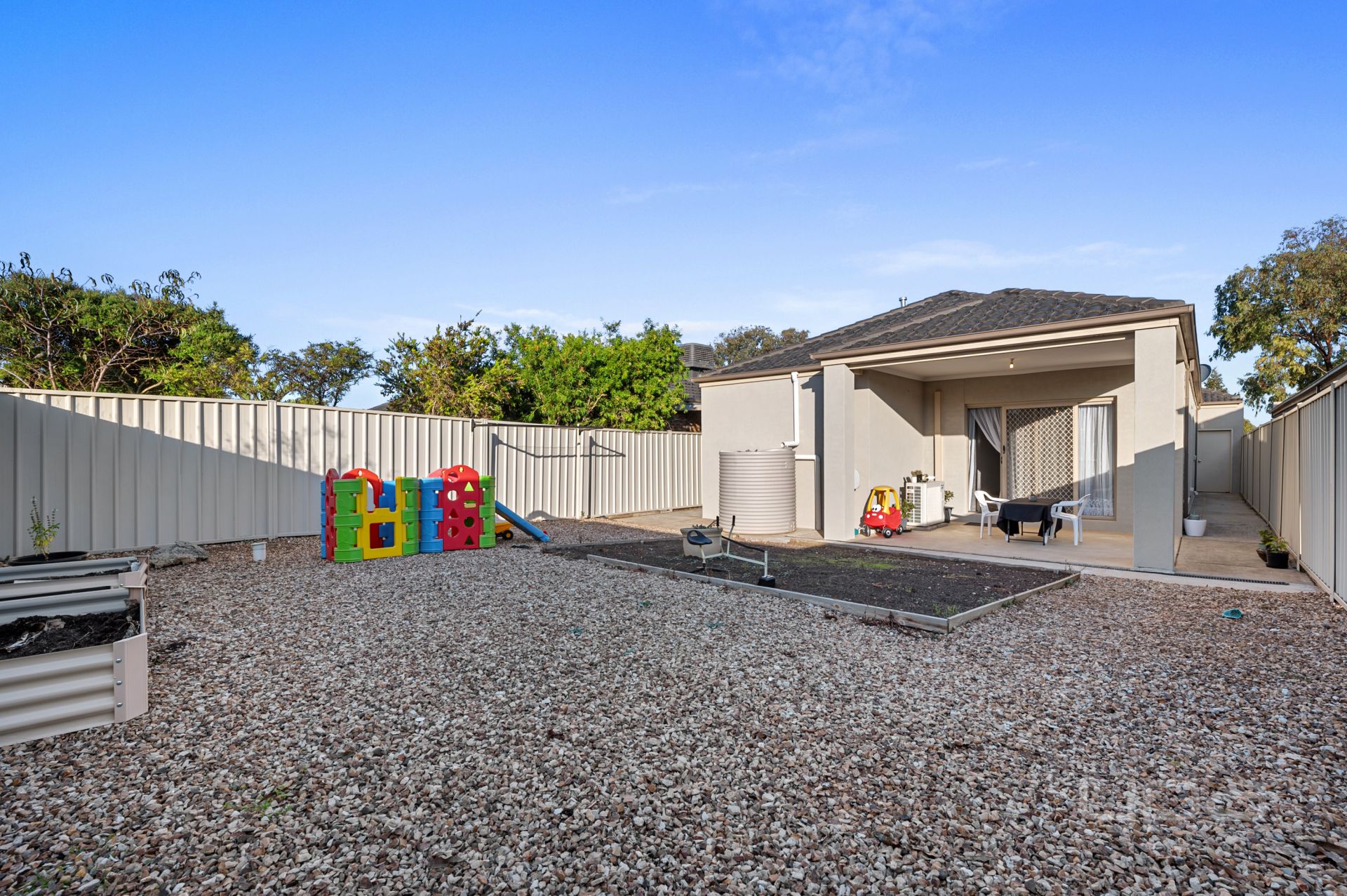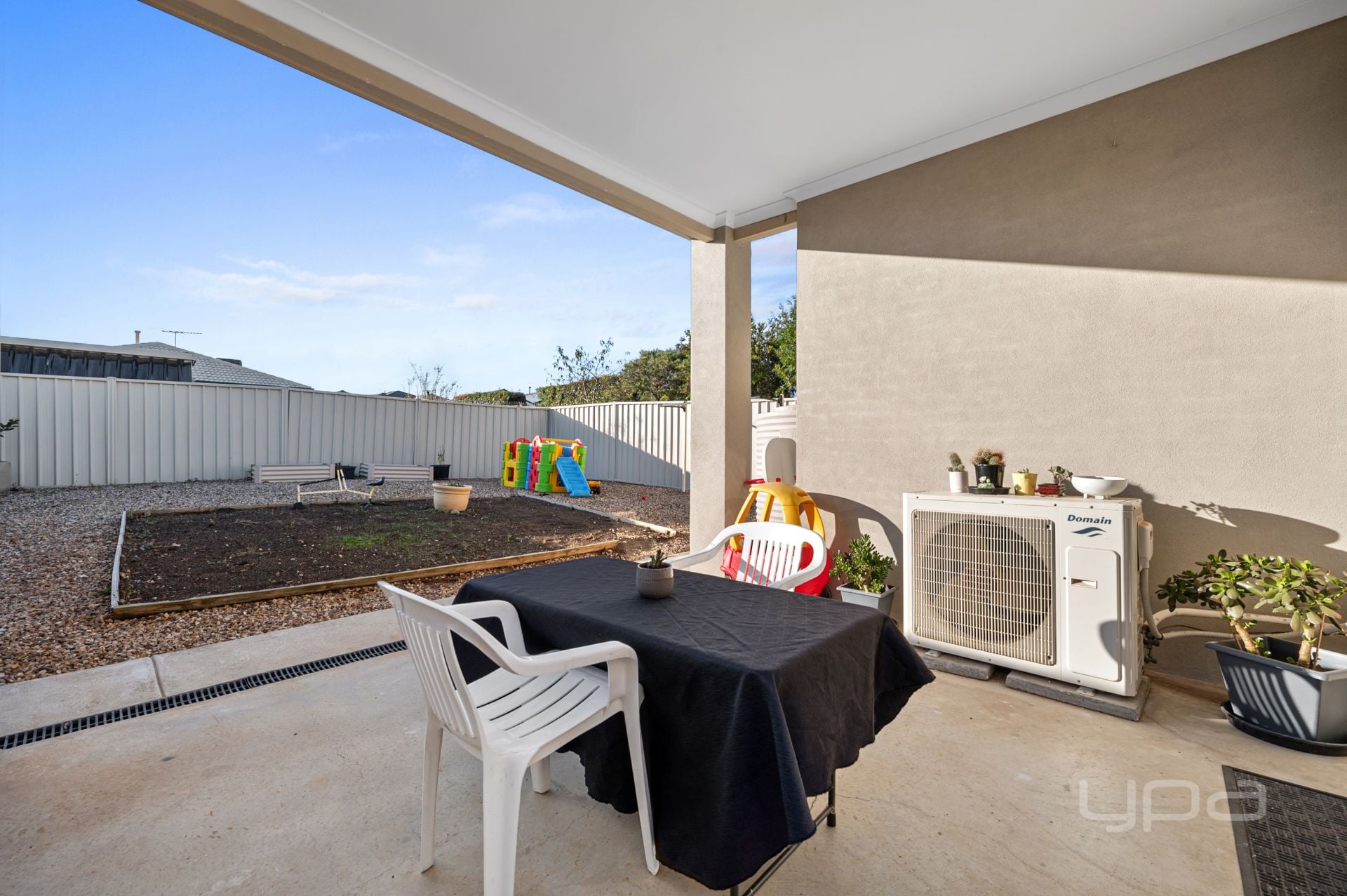 Moving outside through the sliding door into the underroof line alfresco which is perfect for all year entertaining. The back yard offers enough space for the kids/pets to run and play as well as garden beds for the green thumbs or space for the herb garden for the chef of the home.