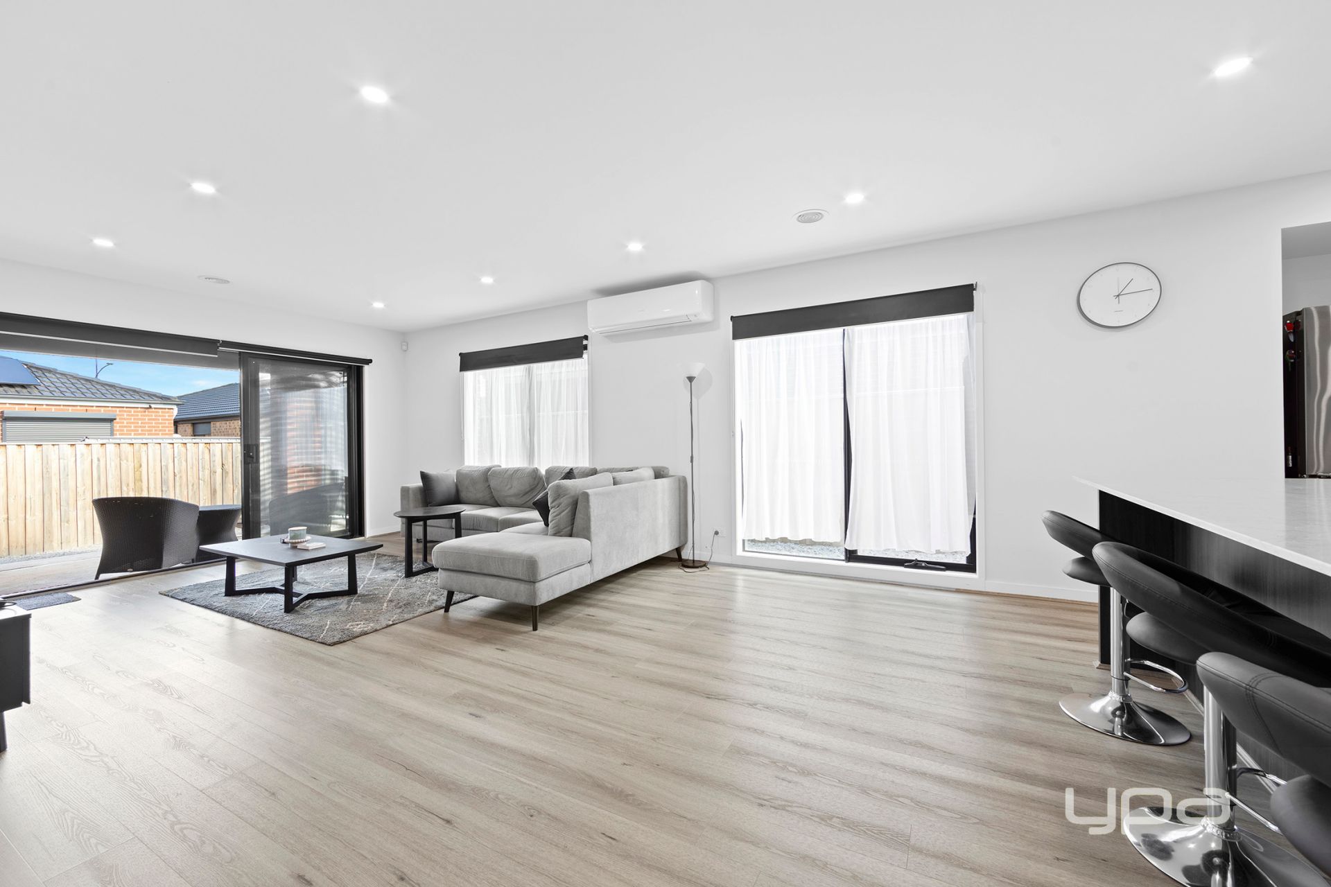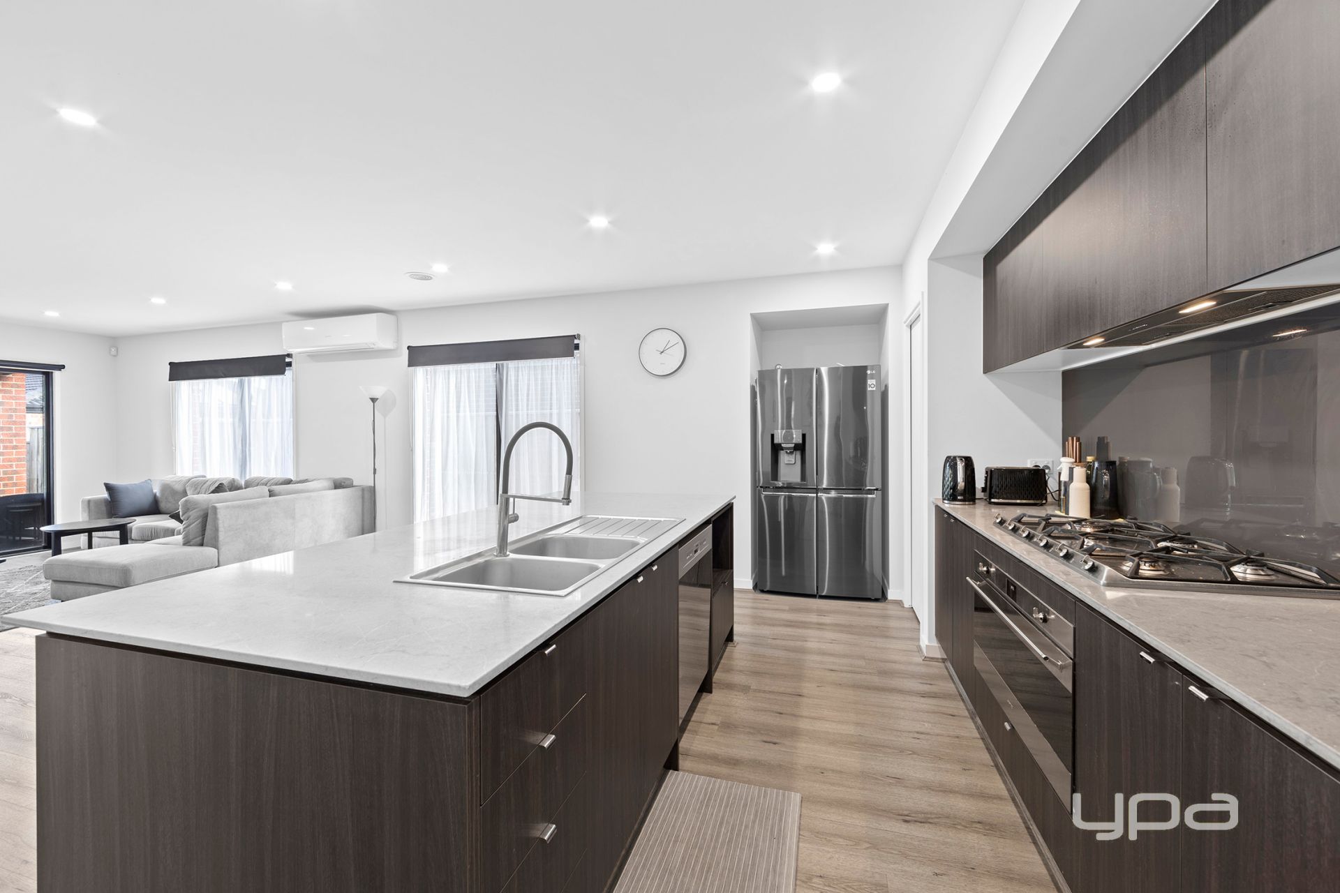 The heart of the home is the expansive open-plan kitchen, meals, and living area – designed for entertaining and effortless day-to-day living. The kitchen boasts quality 900mm stainless steel appliances, a dishwasher, and a large walk-in pantry that provides ample storage and preparation space. A split system in this central zone ensures comfort throughout the year, while natural light flows beautifully into the space.