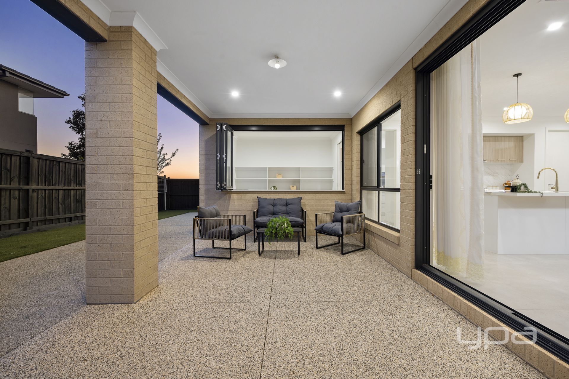 The outdoor setting is equally impressive. The undercover alfresco area is perfect for year-round gatherings, while the landscaped backyard includes side access for boats, trailers, or additional vehicles. The oversized garage offers internal access, Exposed Aggregate Tiles and a rear roller door for added flexibility.