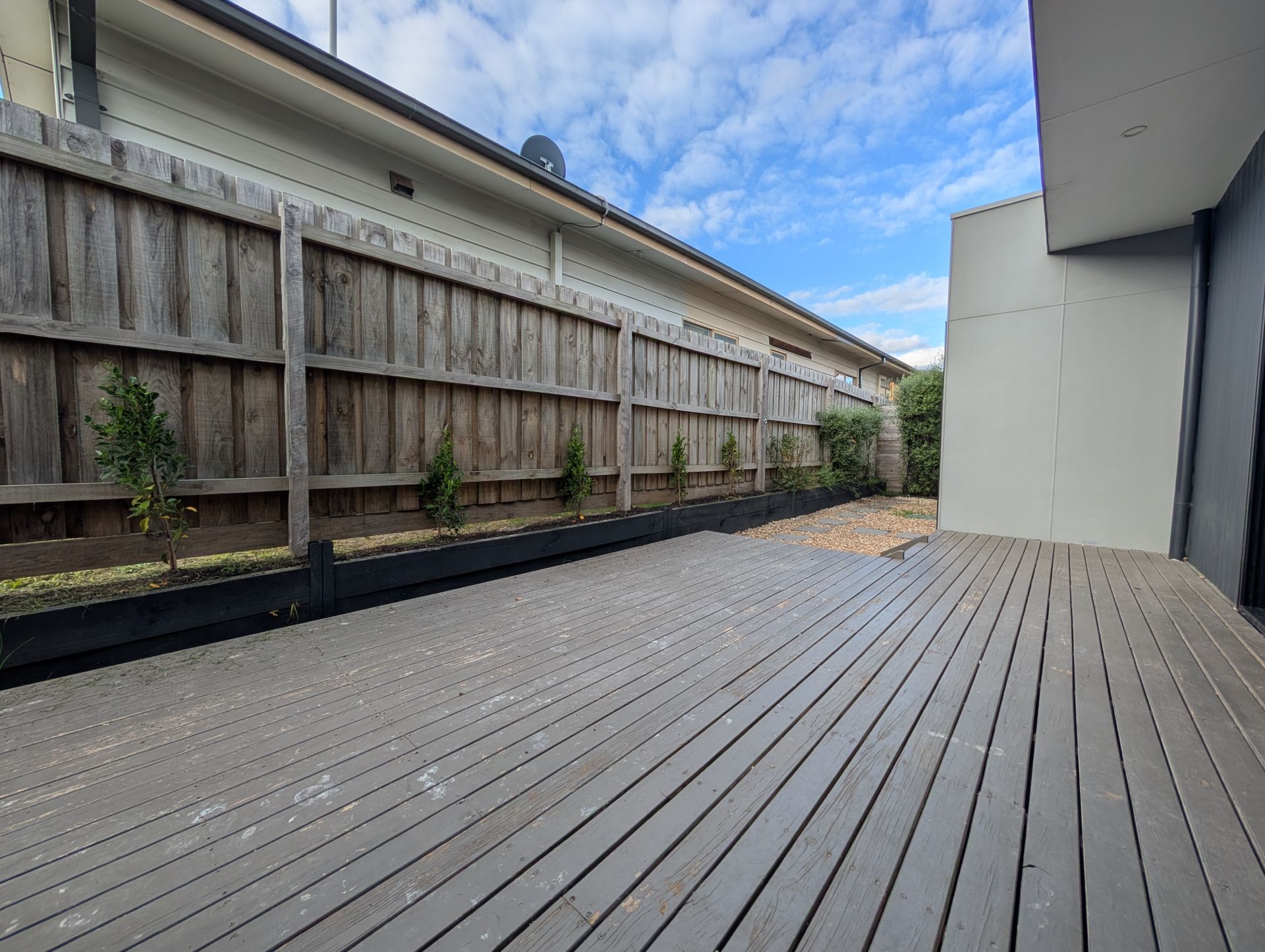 Step outside to a low-maintenance gravel backyard featuring a decked area—perfect for alfresco dining or quiet evenings under the stars.