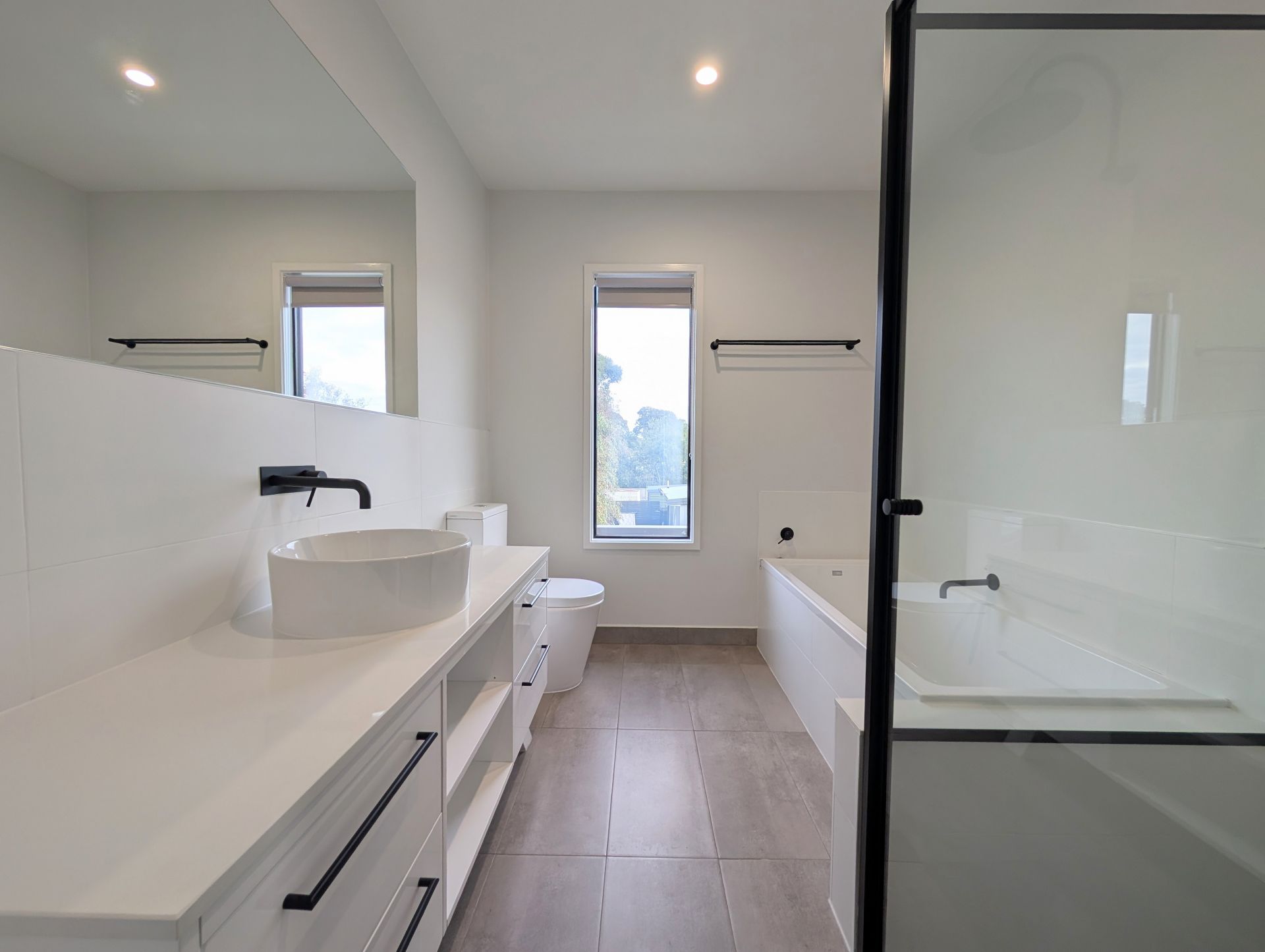 Upstairs offers a second living area, two additional bedrooms with walk-in robes, and a stylish main bathroom complete with a freestanding bath and separate shower.