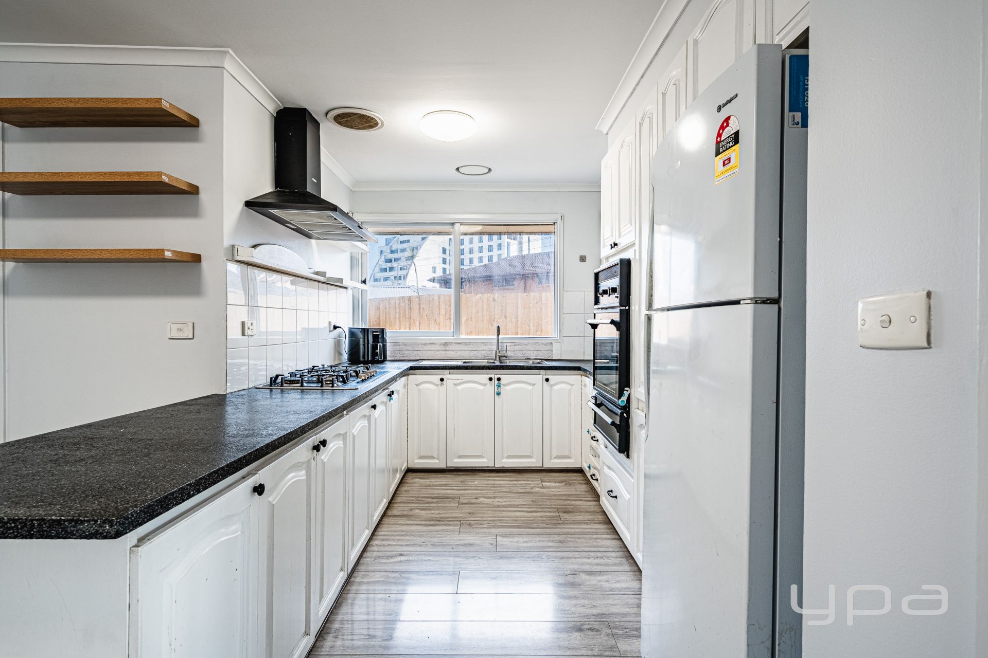 Kitchen: Well-appointed with gas hot plates, an under-bench oven and range hood.