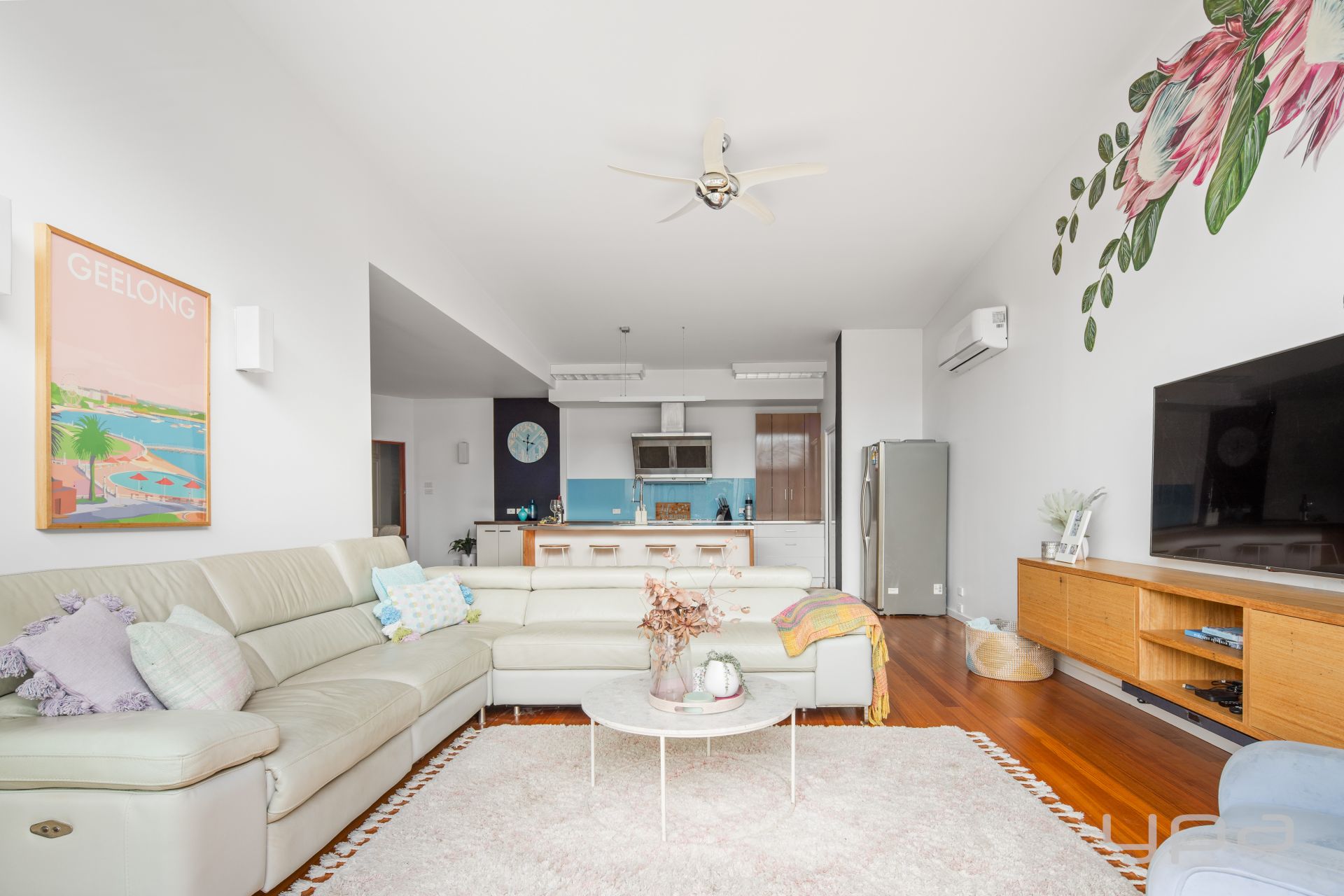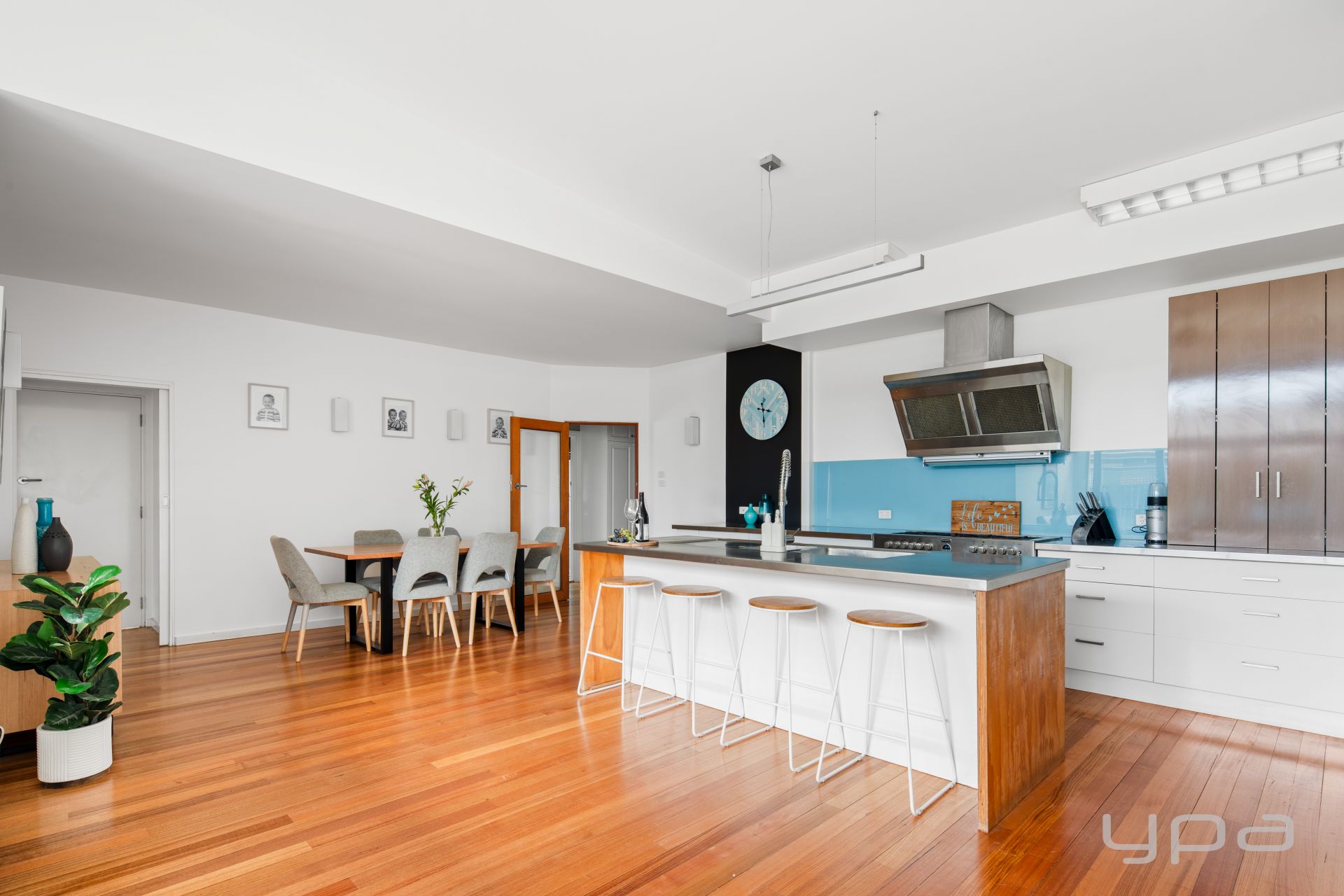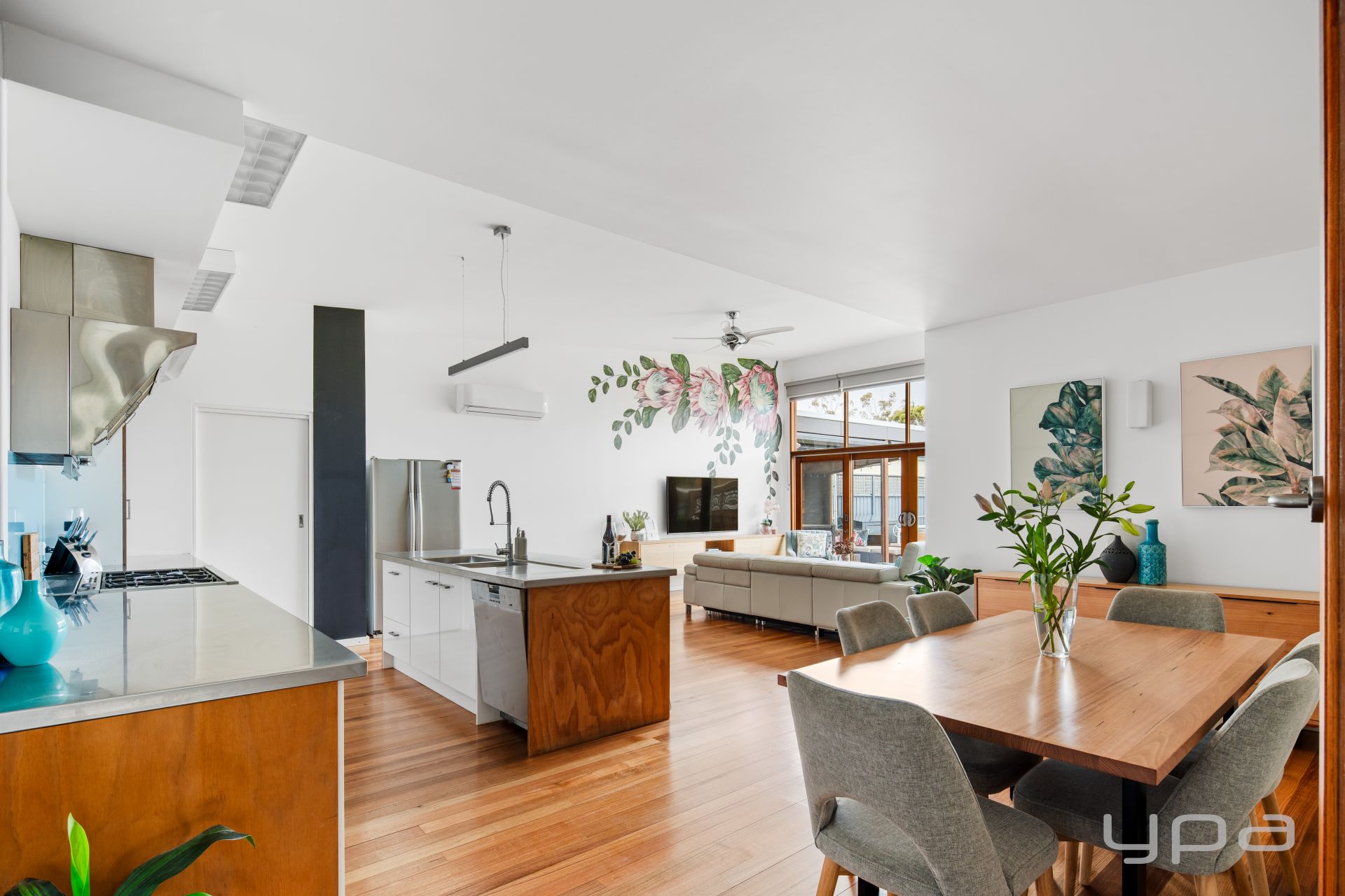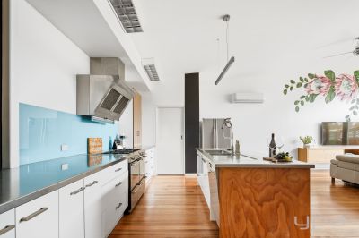• Open plan kitchen, meals and living arrangement featuring soaring ceilings and gorgeous Tasmanian Oak timber floors throughout.