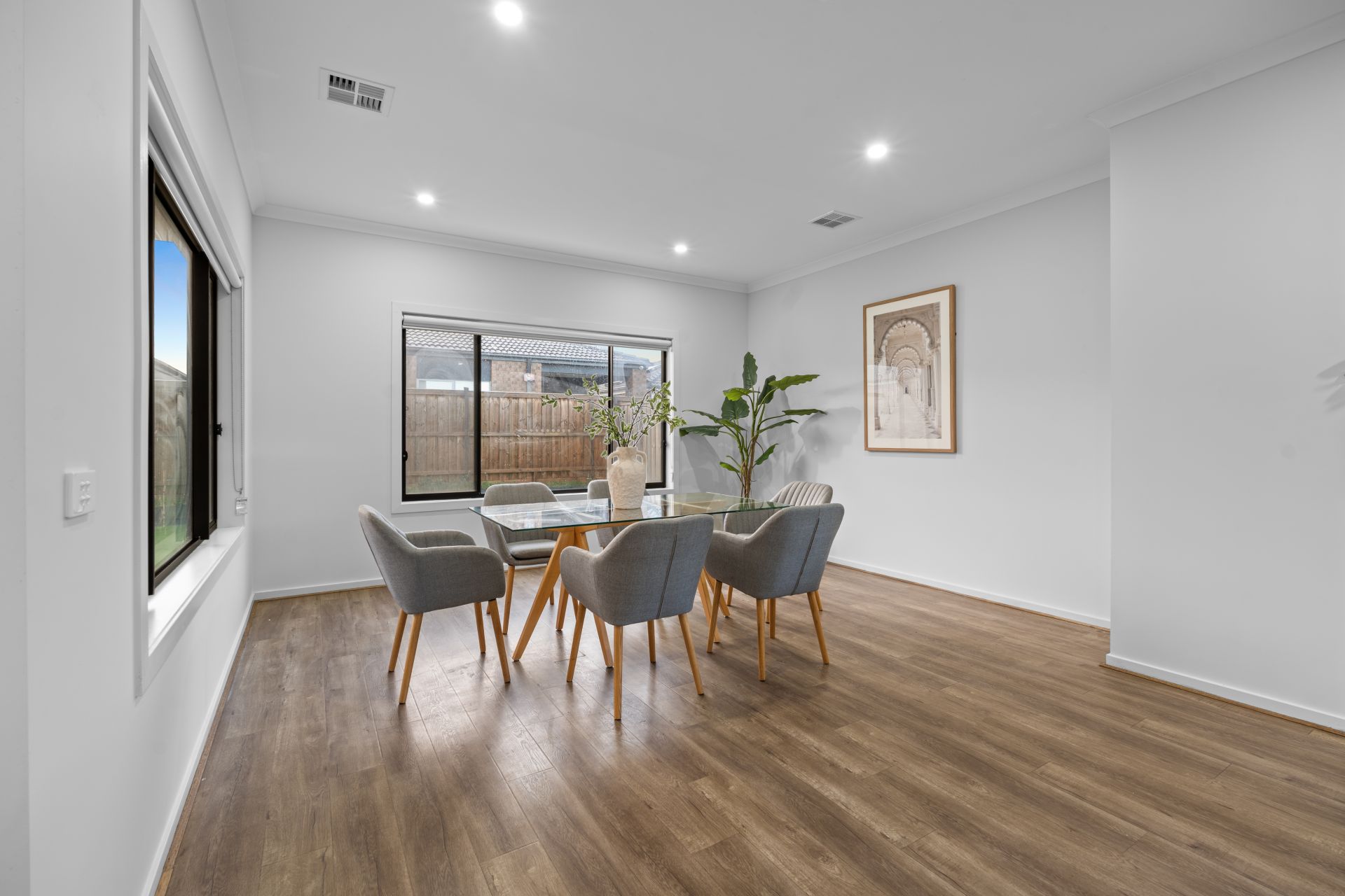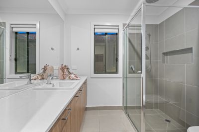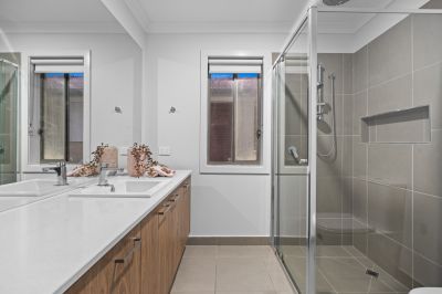 This former display home is packed with premium upgrades including exposed aggregate driveway and paths, double vanity in the master ensuite, zoned alarm system, security cameras, LED downlights throughout, Colourbond roof, rainwater tank, and professionally landscaped gardens at both the front and rear. Ducted heating ensure year-round climate control, making this home as functional as it is beautiful.