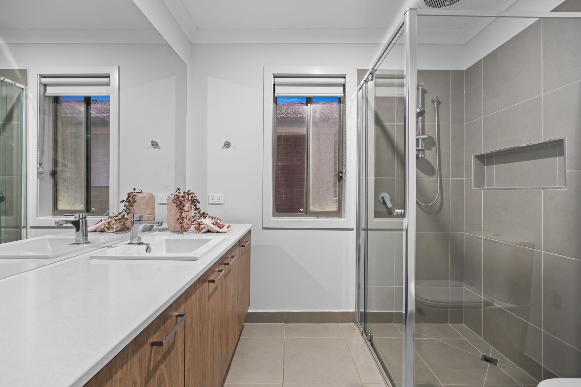 As you step through the wide front entrance, you're greeted with high ceilings, premium porcelain tiles, and a neutral colour palette that sets a tone of understated elegance. The spacious floor plan is designed for practical family living without compromising on luxury. This architecturally designed home boasts five generously sized bedrooms, including two impressive master suites. The first master is located downstairs, complete with a private retreat, walk-in robe, and luxurious ensuite with double vanity. Upstairs, the second master offers similar comforts, while the remaining three bedrooms are all equipped with their own walk-in robes, providing ample space for growing families.