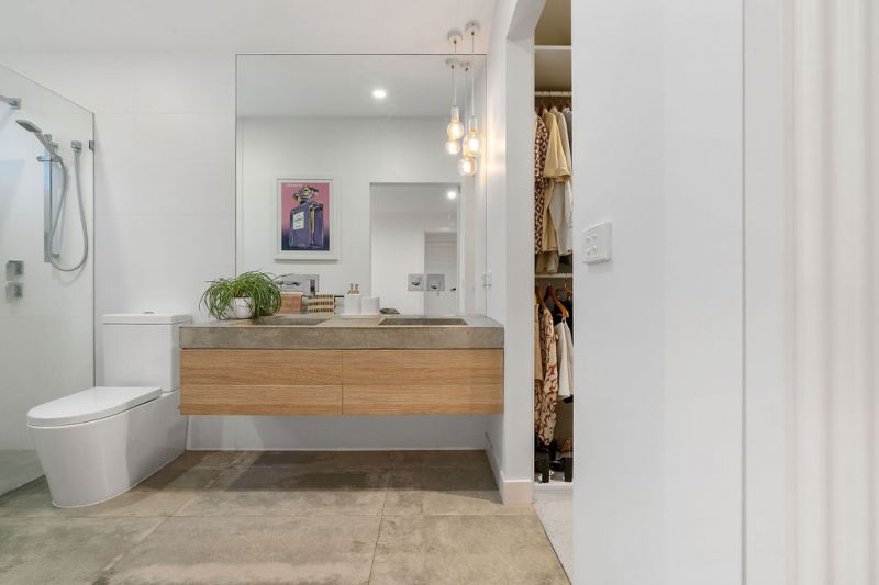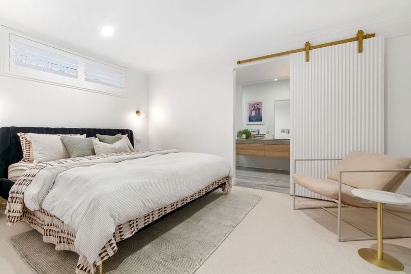 Oriented to the warmth of a northern aspect, the main bedroom continues with gold-toned hardware and a barn door leading to the ensuite bathroom and walk-in robe. Three additional bedrooms feature a range of built-in and walk-in robes to bolster the layout with abundant storage. Allocated beyond typical proportions, the largest bedroom invites consideration as a playroom or home office.