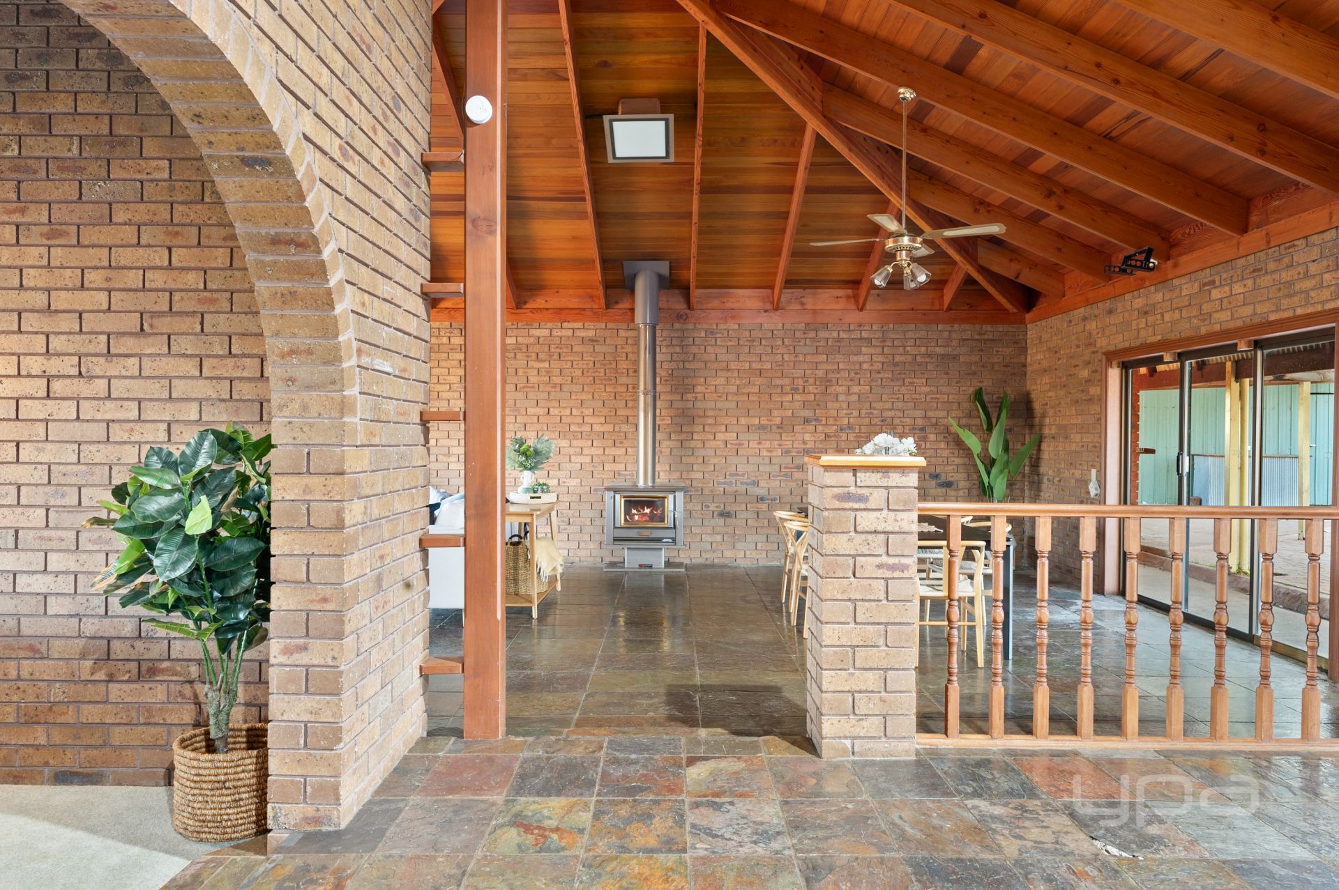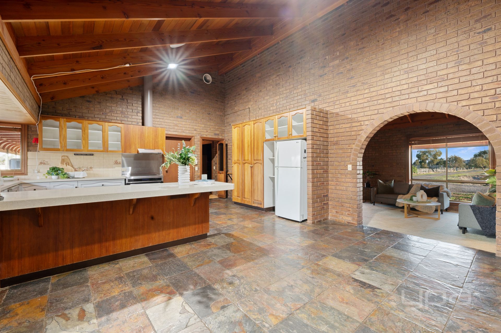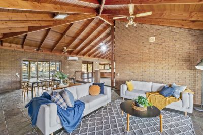 This beautifully constructed home is perfectly positioned on a generous, sprawling block to maximize both space and privacy. Set back from the road, it enjoys tranquil surroundings and breathtaking views, all easily appreciated from the expansive wraparound veranda. Step inside to discover a lovingly maintained interior, where striking slate flooring sets the tone for a warm and welcoming atmosphere. At the front of the home, a spacious and versatile multi-purpose room offers endless possibilities while the vaulted ceilings set the tone for the impressive style that was created through-out the home.