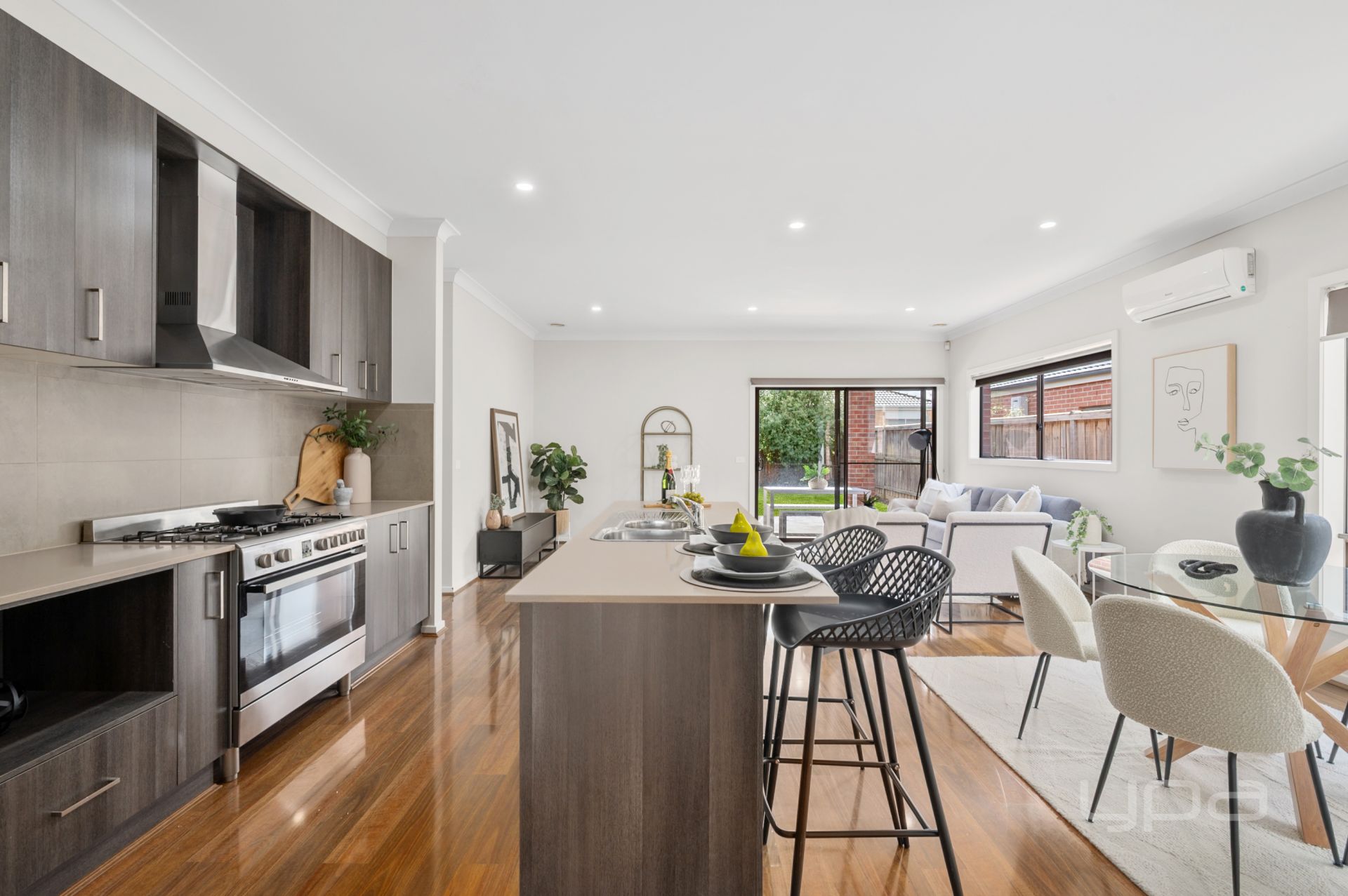 Moving to the heart of this sensational family domain, you are greeted by the stunning modern kitchen featuring; stone bench tops with an island bench, ample bench and cupboard space, walk in pantry, 900mm stainless steel appliances including dishwasher with pleasing views over the large open plan living/dining area that features a split system for complete climate control all year long.