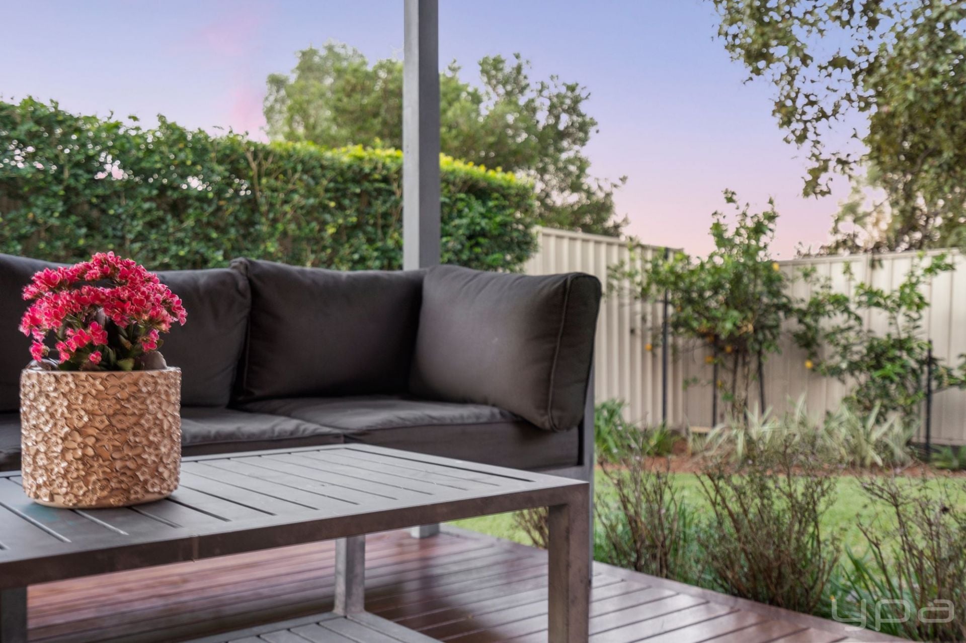 Outdoor entertaining area overlooking the secure backyard