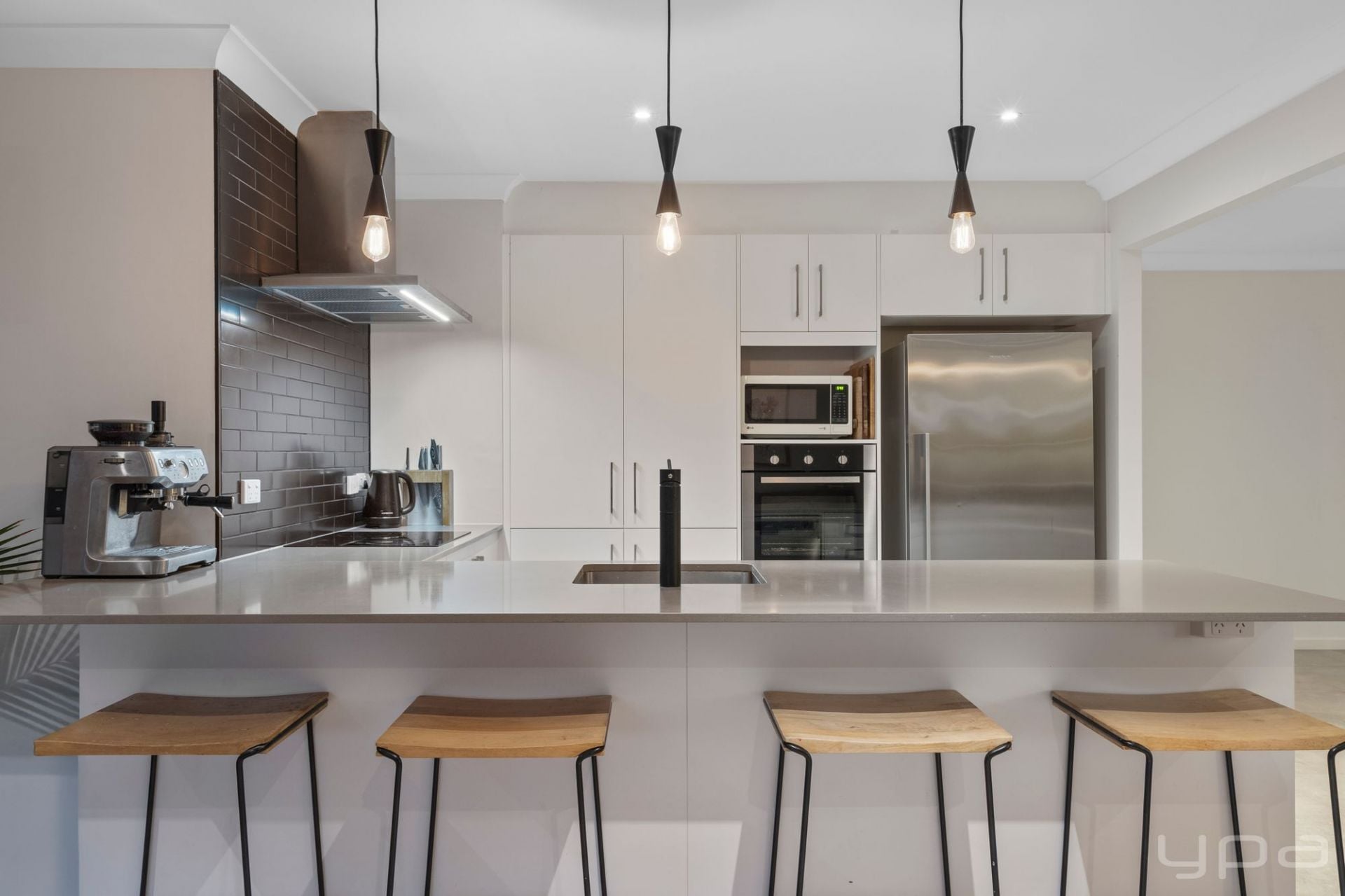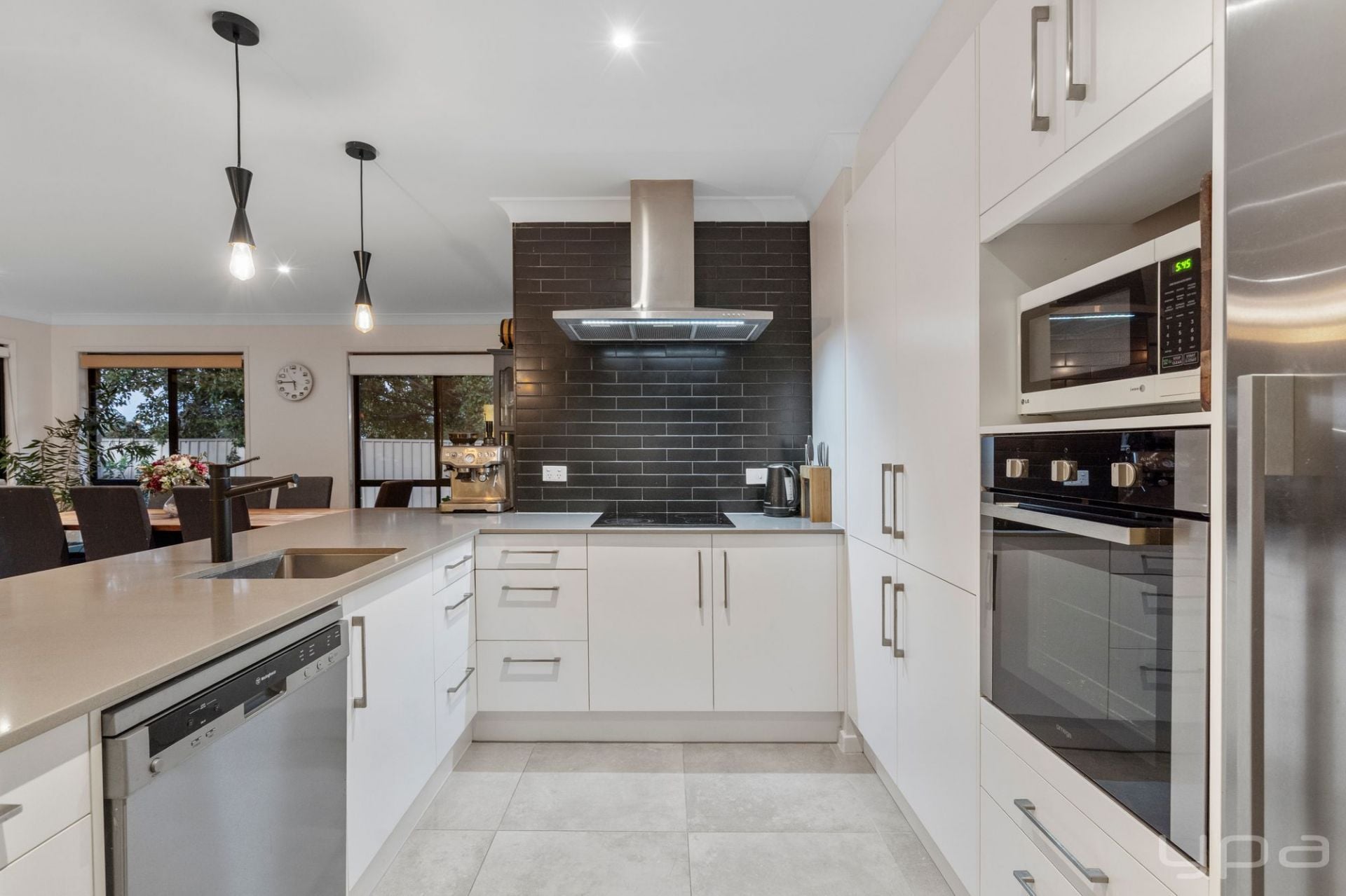 Large kitchen with modern appliances and plenty of bench space