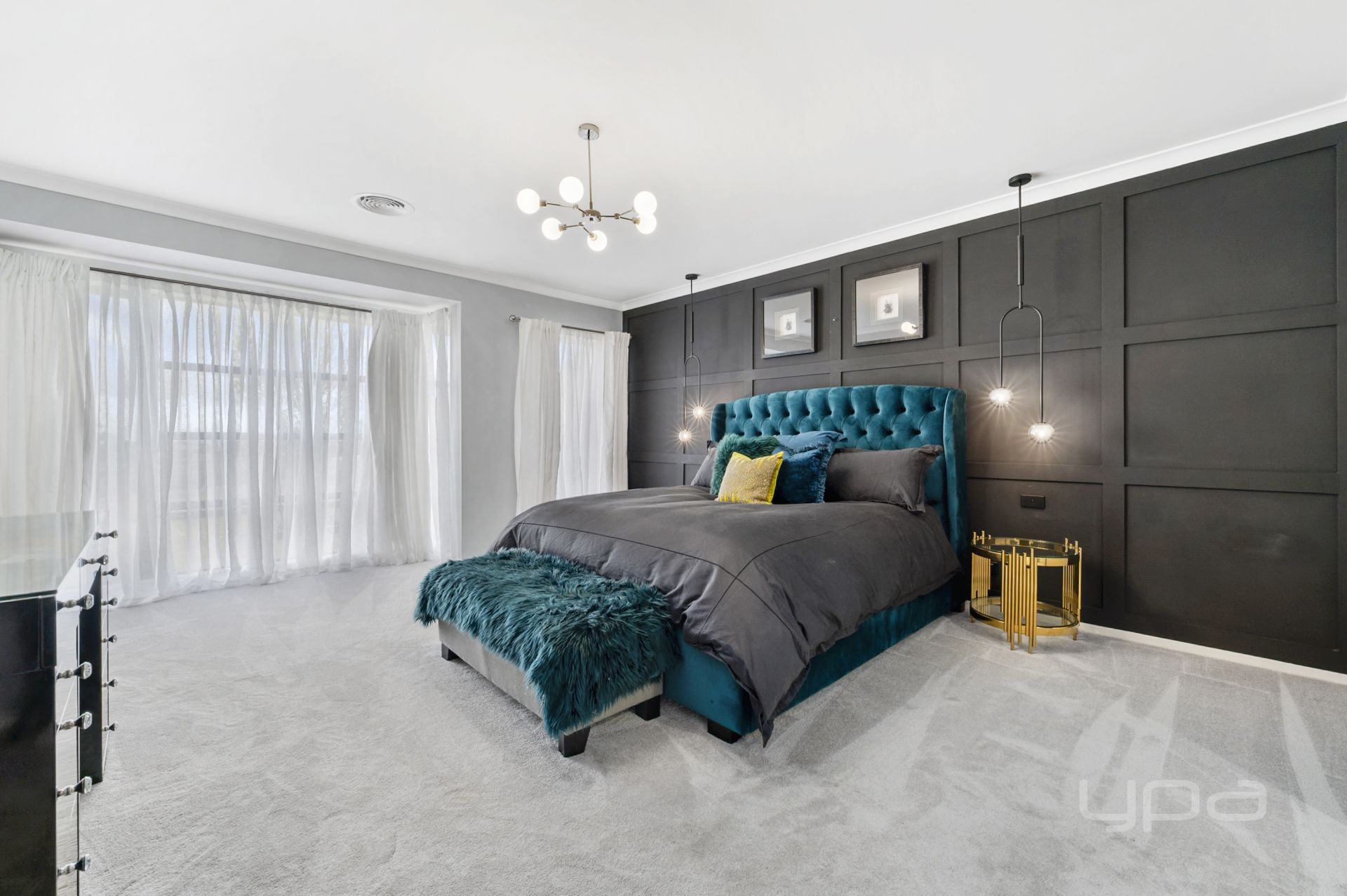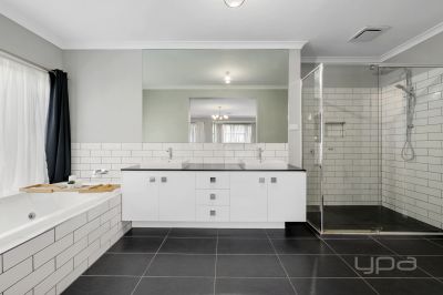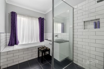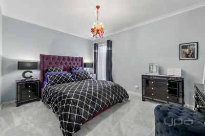 As soon you enter the property you will be wowed and appreciate the upgrades that flow through out, the 9ft ceilings, square set cornicing, upgraded flooring and higher doors set the tone to what to expect throughout the home. The master bedroom is situated at the front of the home and is a statement! With a gorgeous pendant light, timber feature wall and sheer blinds. The massive space on offer is further enhanced by a large walk-in robe and a stunning ensuite with double vanity with stone bench, a larger shower, upgraded tapware, spa bath and a separate toilet.