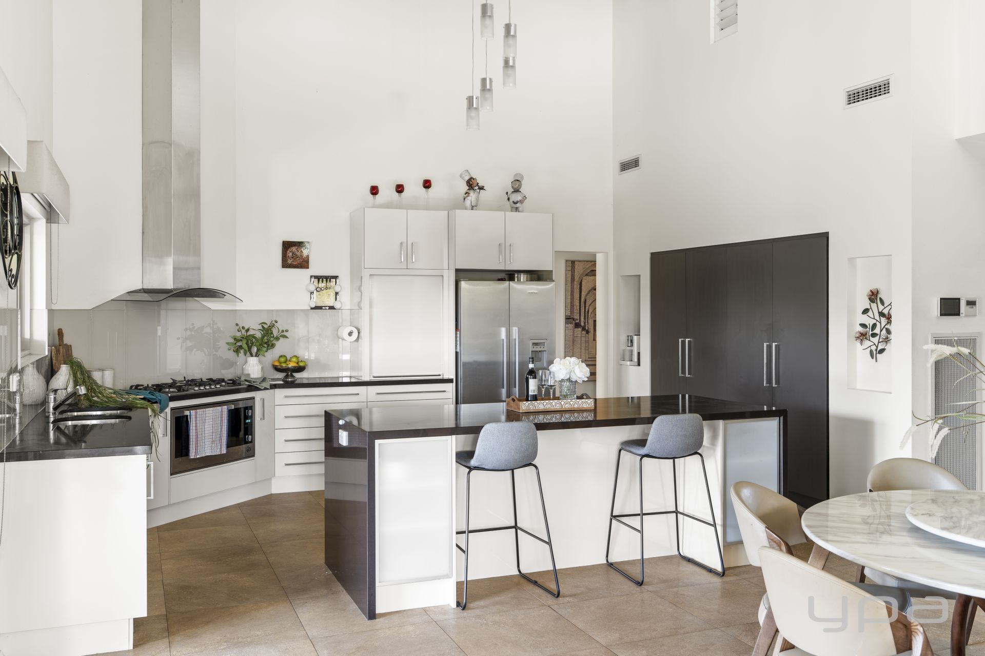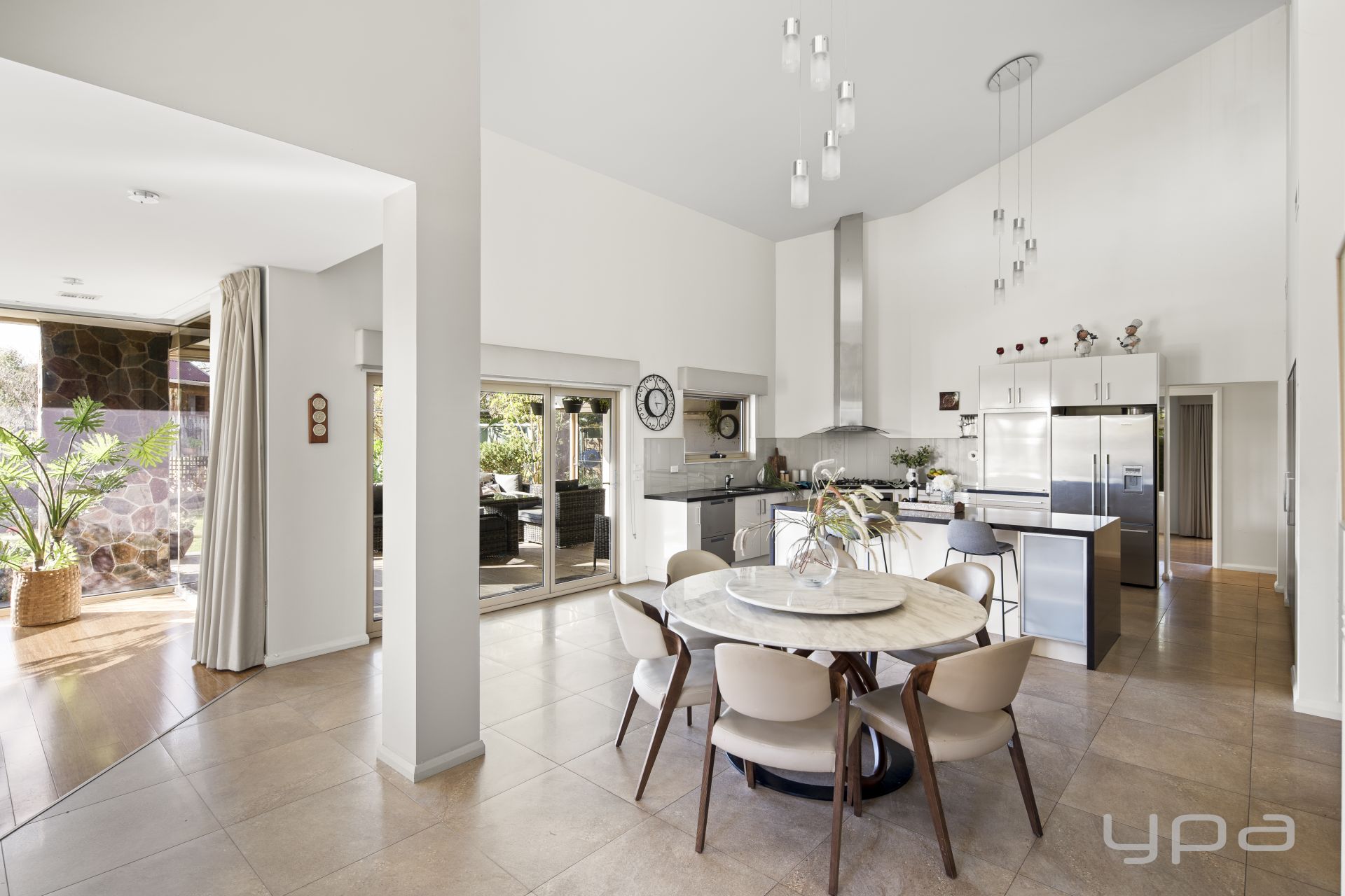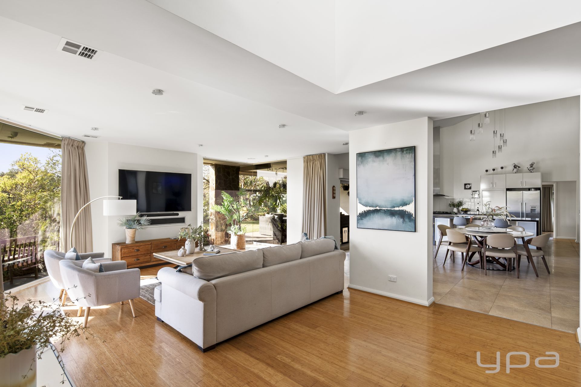 At the heart of the home lies a chef's kitchen complete with quality appliances, ample bench space, and huge pantry – all overlooking the central dining and living space, perfect for both intimate dinners and large-scale entertaining. Adjoining this hub is a large open-plan family zone and a spacious formal lounge with fireplace, ideal for unwinding in winter.