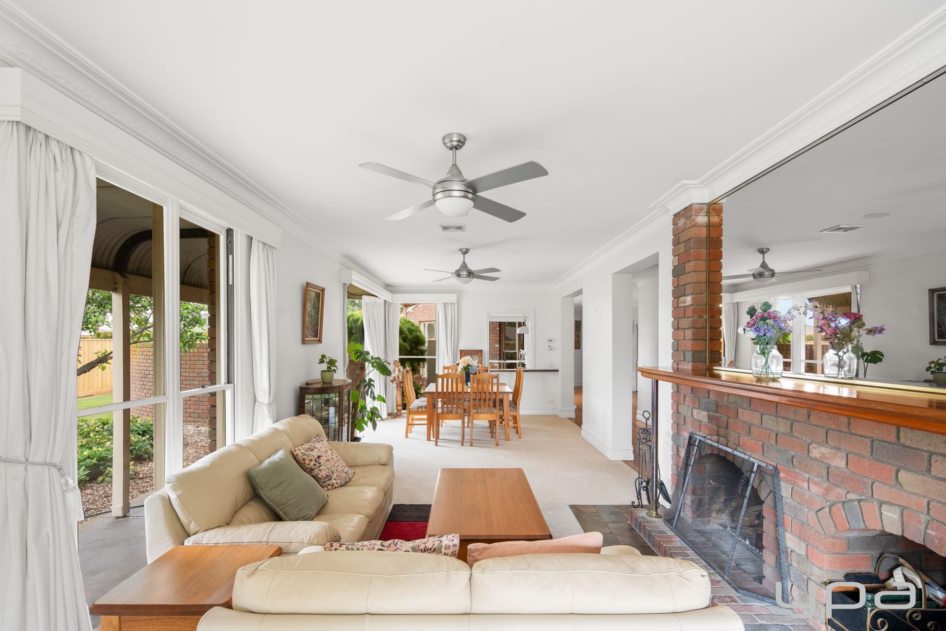 • Formal living with lots of natural light flooding in, the room anchored by the beautiful fireplace