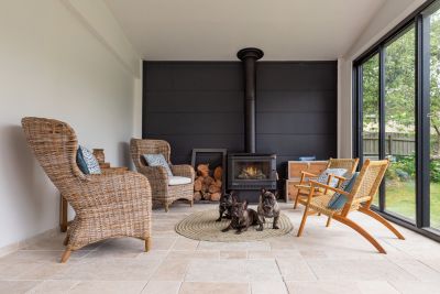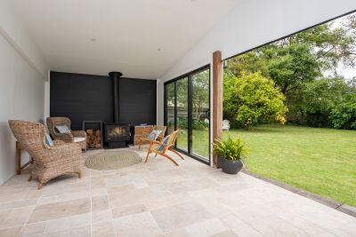 Step outside and discover a true highlight - a covered outdoor living room complete with a cosy wood-burning fireplace, ideal for relaxed evenings after a day at the beach or exploring nearby wineries, golf courses and the Peninsula Hot Springs.