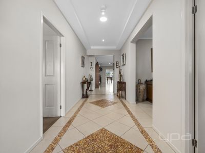 Step inside and you'll immediately appreciate the quality and spaciousness of this impressive family home. High 9-foot ceilings, upgraded tiling, downlights, a wide hallway, and a feature tray ceiling create a sense of luxury and scale. A front bedroom sits conveniently adjacent to the expansive master suite, making it perfect for a nursery. The master itself is a standout, featuring plantation shutters, dual walk-in robes, and a stunning ensuite complete with an oversized shower, double vanity, and abundant cabinetry.