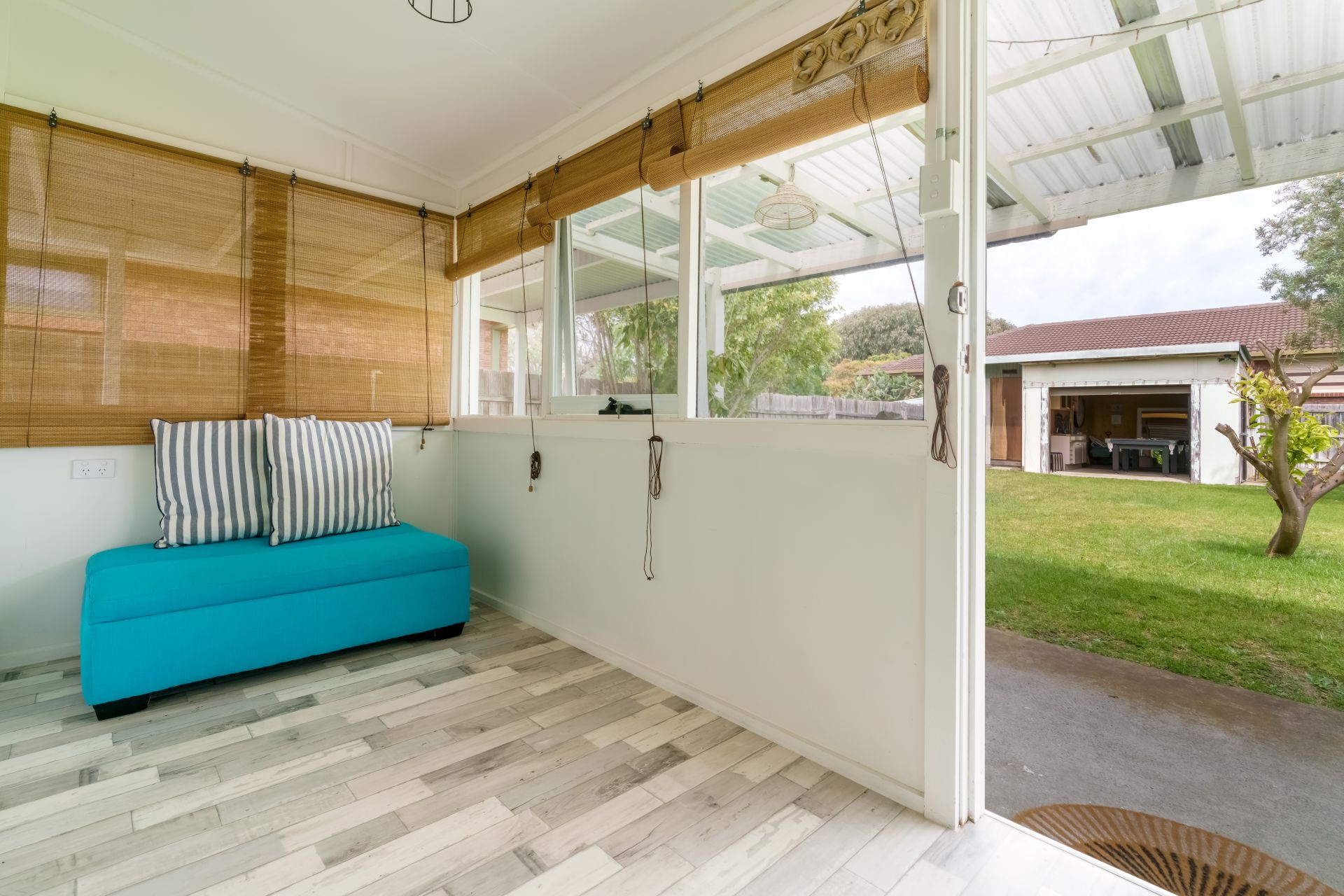 Outdoors, the flat and usable backyard invites endless potential: set up the firepit, store the boards, bring the boat, or simply soak in the sunshine after a morning dip in the bay. With room to expand, garden, or entertain, the options are as endless as the lifestyle on offer.