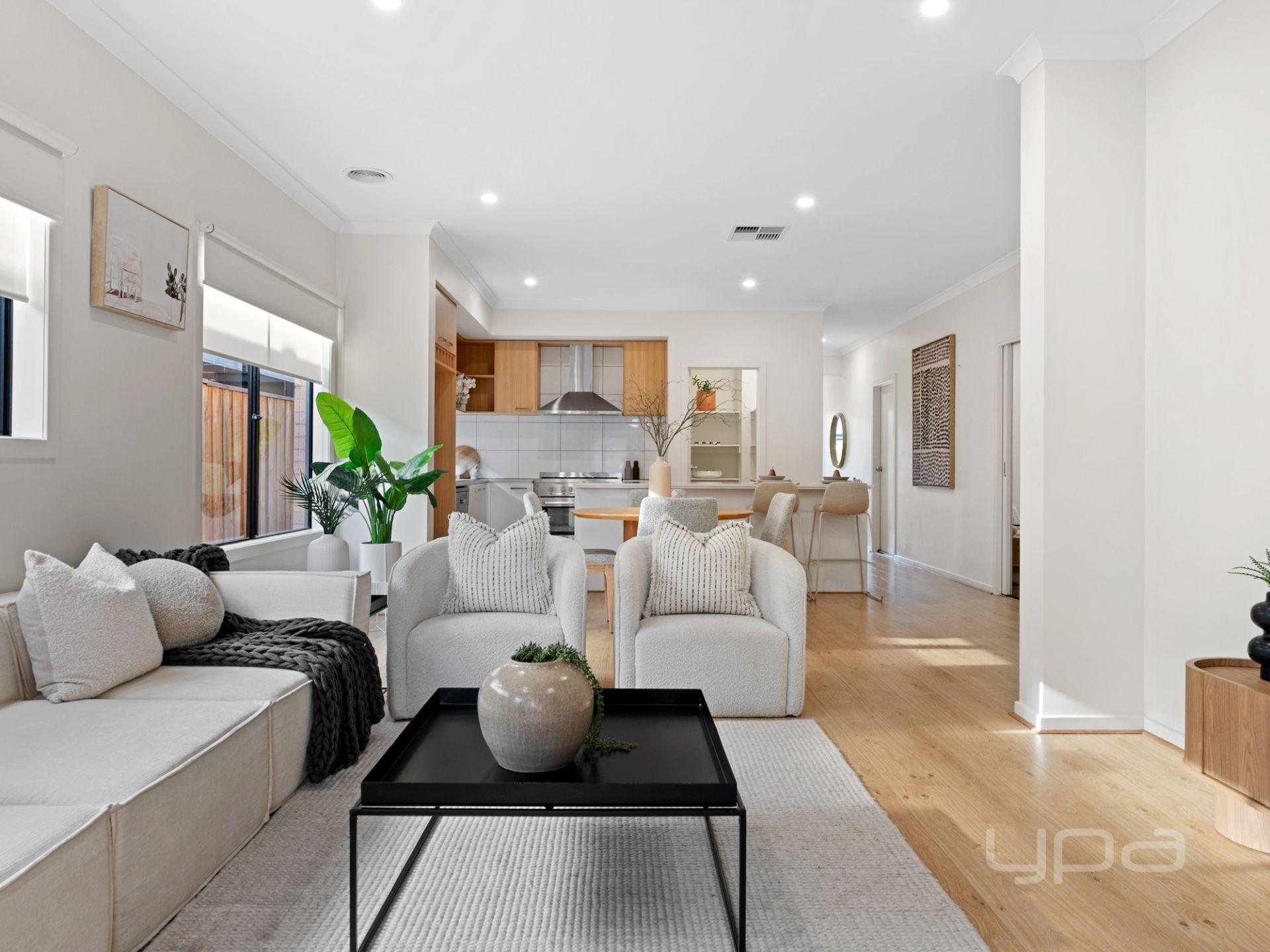 From the moment you enter, you're welcomed by cool toned floorboards, a calming neutral colour palette, and an abundance of natural light flowing throughout. The master bedroom which is located at the front of the property is generously sized and boasts a walk-in robe and stunning ensuite featuring a bigger shower and a double vanity with a stone bench and above basin bowels. As you move through the property you will find the tucked away theatre room, giving you the chance you own your own private movie experience or simply a second living area to be used as a kids toy room.
