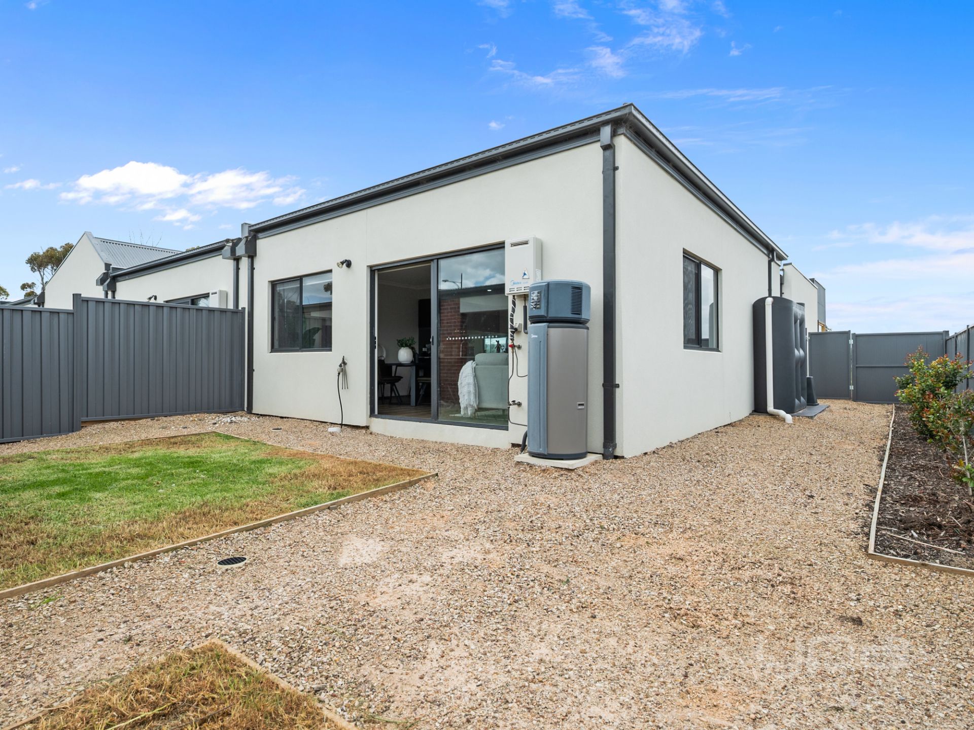 Down the hall, you are met with the remaining two bedrooms which both feature built-in-robes and are accompanied by a joined feature courtyard, which again, not only welcomes an abundance of natural light to the bedrooms and hallway, but also acts as the perfect little outdoor seating area for those morning coffees or a perfect canvas for a greenhouse type setup. It's a subtle touch that adds lots of character to the modern home. Both these bedrooms are serviced by a bright central bathroom that carries the same upgraded features as the ensuite.