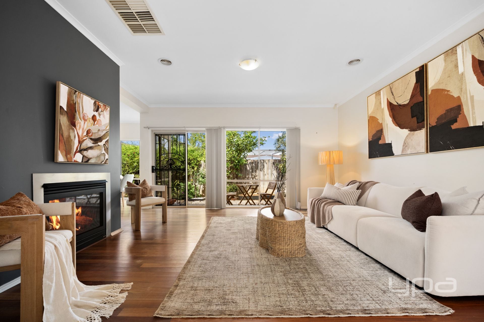 A standout feature is the formal living/lounge room, complete with a gas log fireplace that adds warmth, character and a luxurious ambience. This inviting space opens to an additional outdoor entertaining zone, ideal for intimate evenings or hosting larger gatherings with ease.