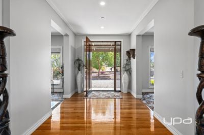 As you make your way through either side of the horseshoe driveway, you will be impressed by the garage on either side of the house, the huge side access to the massive shed or the extensive landscaping. Upon entering the home, you will immediately take notice of the high ceilings, hardwood floorboards, upgraded shadow line cornicing, upgraded skirting boards and a free flowing floor plan.
