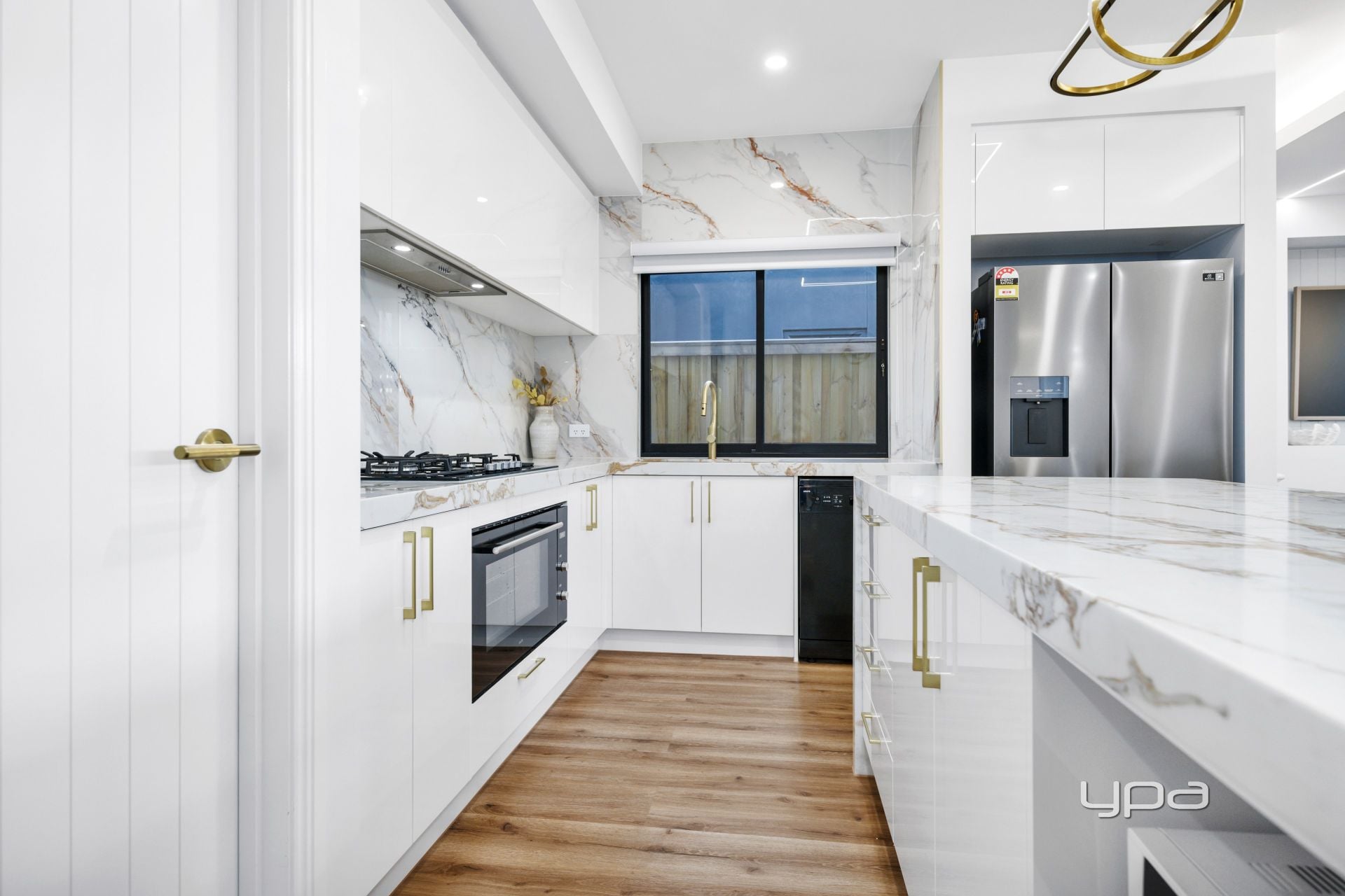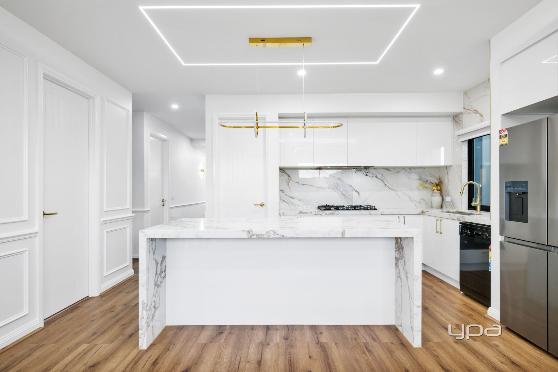 • Light-filled open-plan kitchen, meals, and family area, enhanced by a modern electric fireplace