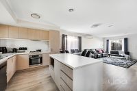 Upstairs, a cosy retreat offers flexibility for a second lounge, home office or children's play space — a quiet escape to unwind at the end of the day. The spacious master bedroom is privately positioned and complete with a walk-in robe, ensuite and split system for added comfort. Two additional bedrooms with built-in robes are serviced by a central bathroom with separate shower and bath, while a convenient powder room adds extra practicality.