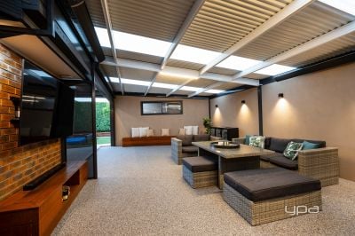• Expansive pergola area equipped with ceiling fan, electric heaters, electric roller blinds and a wood-fire Coonara-perfect for year-round entertaining