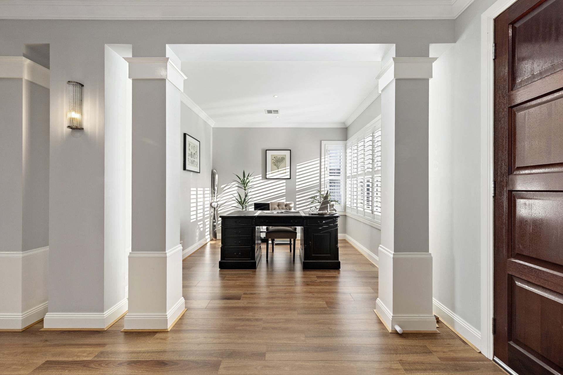 Just off the entrance sits a well-appointed home office or study – the ideal space for professionals working from home or for children who need a quiet area to focus. Flooded with natural light, it offers serenity without compromising on style.