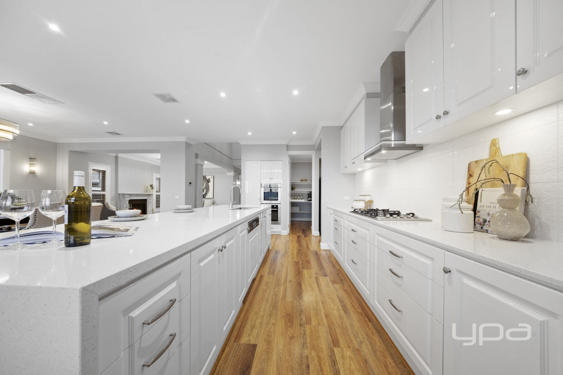 -A butler's kitchen with an expansive walk-in pantry, offering ample space for storage and food preparation out of sight