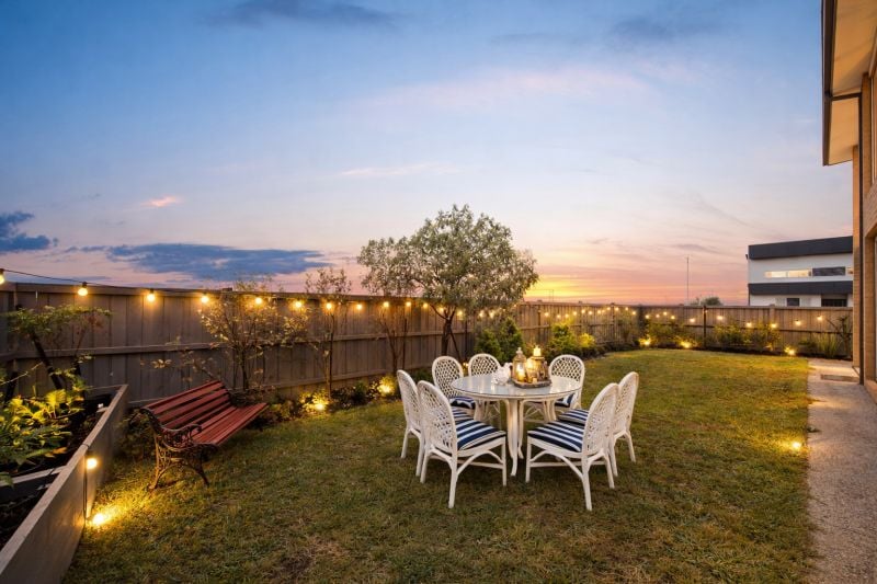 The landscaped garden is low maintenance yet vibrant, providing ample space for kids and pets to run freely, or for you to simply relax with a book and enjoy the sound of waves nearby.